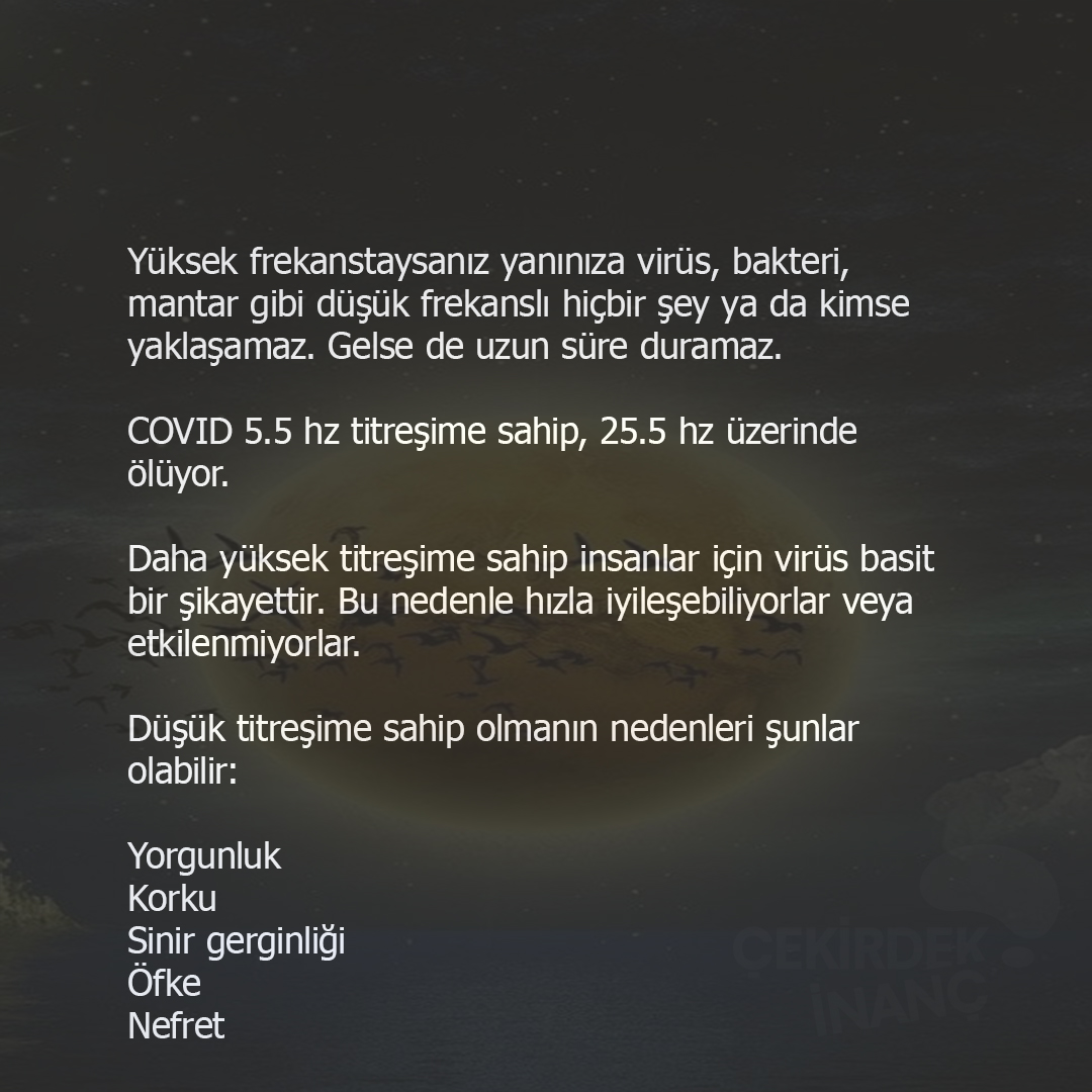 Yüksek frekanstaysanız yanınıza virüs, bakteri, mantar gibi düşük frekanslı hiçbir şey ya da kimse yaklaşamaz. Gelse de uzun süre duramaz.